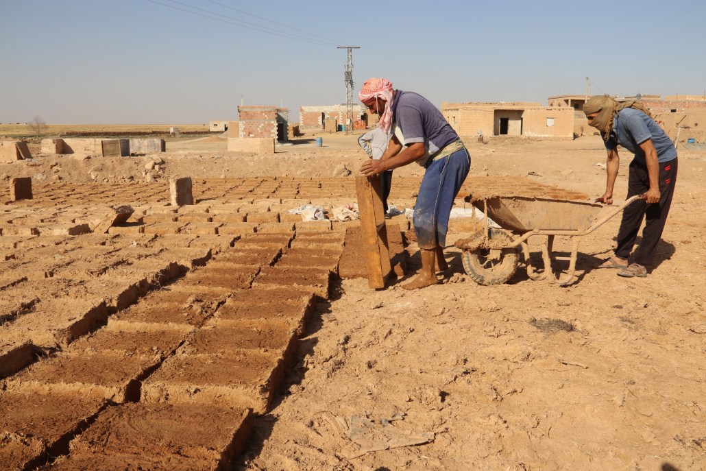 La coopérative Umceren comprend 54 membres issu·e·s de 7 villages. Les membres sont arabes, kurdes et chrétien·ne·s assyrien·ne·s, avec une participation égale des hommes et des femmes. La coopérative travaille dans plusieurs domaines. Elle cultive du blé et des légumes sur plusieurs hectares de terres, qui appartiennent en partie à l’AASNE, et sont en partie la propriété des membres de la coopérative. Le produit des récoltes est vendu sur le marché. Outre l’agriculture, le projet le plus important de la coopérative est la construction d’une école pour les enfants du village. L’accès à l’éducation est difficile pour les villageois·e·s car l’école la plus proche est à trois ou quatre kilomètres. En automne et en hiver, lorsque la pluie inonde les rues de boue, parcourir de telles distances devient compliqué. Avec le soutien du Bureau des coopératives de Heseké, la coopérative a maintenu les coûts de construction à un niveau bas en utilisant des matériaux locaux et en comptant sur la main-d’œuvre de ses membres. Un autobus scolaire rassemblera les enfants de huit villages pour les conduire à l’école, tandis que l’école devrait également accueillir des activités et des programmes éducatifs pour adultes. Un autre problème que la coopérative souhaite résoudre est la mauvaise alimentation en électricité et en eau. Deux des villages ne disposent d’aucun accès à l’électricité et la coopérative collecte donc des fonds afin d’acheter un générateur.