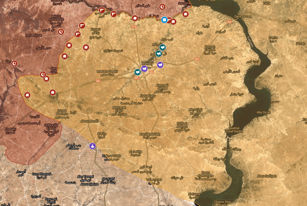 As a nexus point between trans-Euphrates North and East Syria (NES) and the Kurdish-dominated regions of Afrin, Shehba, and the Aleppo neighborhoods of Sheikh Maqsud and Ashrafiyeh in Syria’s northwest, as well as housing Tishrin dam to the southwest of the city, Manbij is of crucial importance to the Autonomous Administration. Likewise, the Damascus government and Turkey eye Manbij as a likely target for invasion, due to the aforementioned location and Arab-majority population. Uniquely, Manbij is beset by a double frontline: to the north and west, the Turkish-backed ‘Syrian National Army’ (SNA) constantly threaten the region, with Turkey proper not 12km behind. On the southern flank, the government of Bashar al-Assad, backed by Russia, seeks to widen its influence.