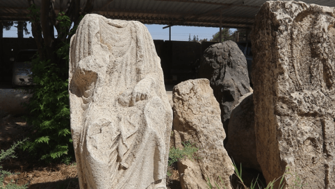 The city of Manbij served as a depot & marketplace for looted antiquities during ISIS’ caliphate. Local archeologist Abdulwahhab Shekho says that around 200 archeological objects remain in the city - mainly statues, spanning the Roman, Persian, Byzantine, and early Islamic periods. Most objects lie strewn across a yard, uprooted from their historical context, and many decapitated or defaced by the jihadists. The city also houses antique mosaics from the Roman period (330 BC), preserved at the site of a series of early Christian-era churches, which were all bulldozed by ISIS in 2014. The sole surviving mosaics were systematically defaced by ISIS for supposedly violating Islamic principles. Many mosaics bear the scars of being cut out from their original locations in order to be sold to Turkey, on to the wider world - a principal source of funding for ISIS during their early expansion.