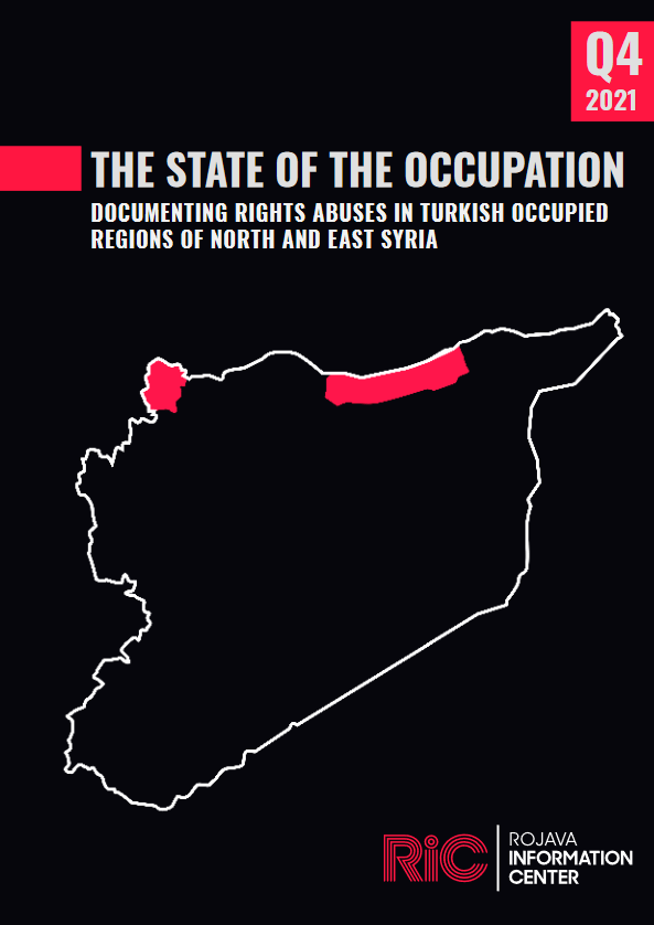 RIC’s quarterly report on the state of the Turkish occupation in Northern Syria tracks human rights violations and crimes committed by Turkey and Turkish-backed SNA groups in the occupied regions of Afrin and the ‘M4 Strip’ – the border region between the occupied cities of Sere Kaniye and Tel Abyad.