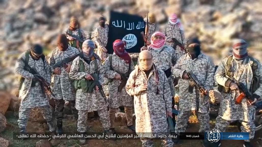 في مارس ، تعهدت الخلايا النائمة لداعش في الفلبين وغرب إفريقيا بالولاء لخليفة داعش الجديد من خلال عدد لا يحصى من الصور ومقاطع الفيديو المنشورة على قنوات التواصل الاجتماعي الخاصة بهم. كما استجاب مقاتلو داعش المقنعون في سوريا للدعوة (انظر أعلاه) ، على الأرجح من داخل جيوب الأراضي التي يسيطرون عليها في الصحراء السورية غرب نهر الفرات. تُظهر صور المقاتلين المتمركزين في سوريا ما يزيد عن 50 مسلحاً ، على الرغم من أن الكثيرين منهم منغمسون في خلايا نائمة في جميع أنحاء البلاد.